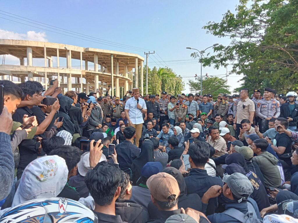 Berdasarkan pantauan Serambi Lampung.com, para mahasiswa tiba di Tugu Adipura Lampung Selatan sekitar pukul 14.51 WIB. Mereka langsung melakukan orasi. Tidak berapa lama, Bupati dan Wakil Bupati Lamsel (Radityo Egi Pratama – M.Syaiful Anwar), di dampingi Dandim 0421 Lamsel Letkol. Kav M. Nuril Ambia dan Kapoles Lamsel AKBP Toni Kasmiri.