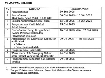 Berdasarkan informasi yang dihimpun Serambi Lampung.com, Dalam seleksi tersebut, pihak panitia melibatkan tim panitia seleksi (pansel) dari unsur akademisi, psikolog dan perusahaan.