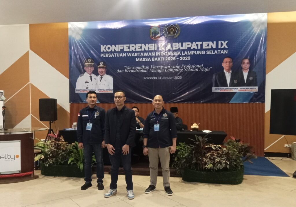SERAMBI LAMPUNG – Edwin Apriandi terpilih secara aklamasi menjadi Ketua PWI Lampung Selatan dalam Konferensi Kabupaten IX masa bakti 2026 – 2029, Rabu, 14 Januari 2026, di Grand Elty Kalianda.