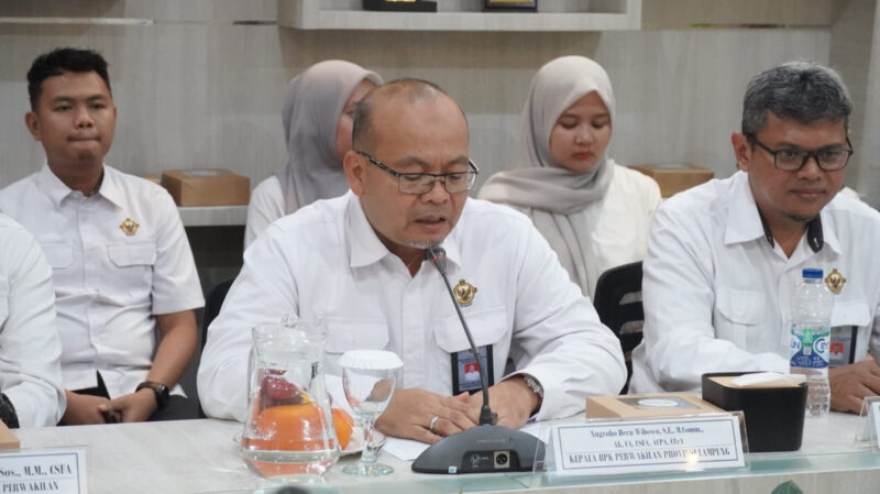​”Untuk per Desember 2024 itu 75,41%. Dan untuk per Desember 2025 menjadi 79,84%. Ada peningkatan sebesar 4,4%. Kami mengapresiasi adanya peningkatan tersebut sebagai bentuk komitmen Pemerintah Provinsi Lampung dalam menindaklanjuti rekomendasi BPK,” ungkap Nugroho. (Dinas Kominfotik Provinsi Lampung).