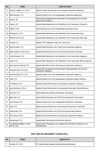 Selain itu, terdapat 1 pejabat eselon II kembali ditunjuk Cahyadi sebagai Plt Kepala Dinas Koperasi dan UKM Lampung Selatan.