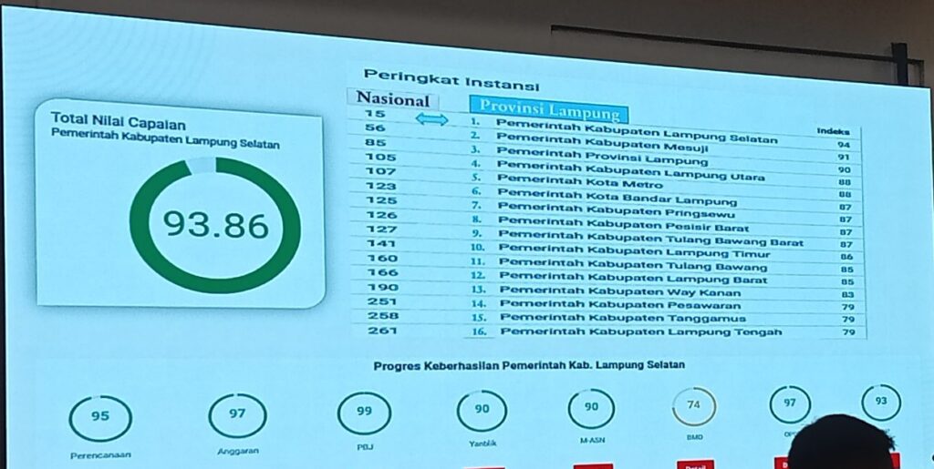 Berdasarkan informasi yang dihimpun Serambi Lampung.com, Pemkab Lampung Selatan mendapatkan urutan ke -15 secara Nasional dan urutan pertama atau ke-1 se – Provinsi Lampung.